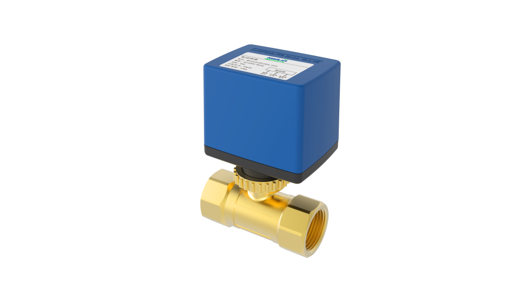 控制閥由雙向電機驅動,電機與溫控器通過公共端、開啟端、閉合端連接。溫控器不斷采樣、處理現場數據,發出控制信號,令電動球閥電機運行或停止,控制電動球閥的開閉程度,冷水或熱水進入風機盤管,為房間提供冷氣或暖氣;當室溫達到溫控器設定值時,溫控器令電動球閥斷電,使閥門開度處于最佳狀態,室溫始終保持在溫控器設定的溫度范圍內。