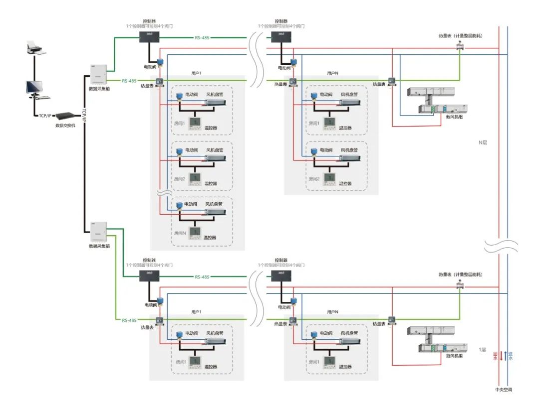 為了兼顧系統的性價比和計費的準確性,很多綜合性建筑樓宇采用兩種方法相結合的方式。通過計量用戶使用中央空調的時間當量,和熱量表總冷、熱數據,共同作為分攤依據,計算出各用戶的應繳費用。