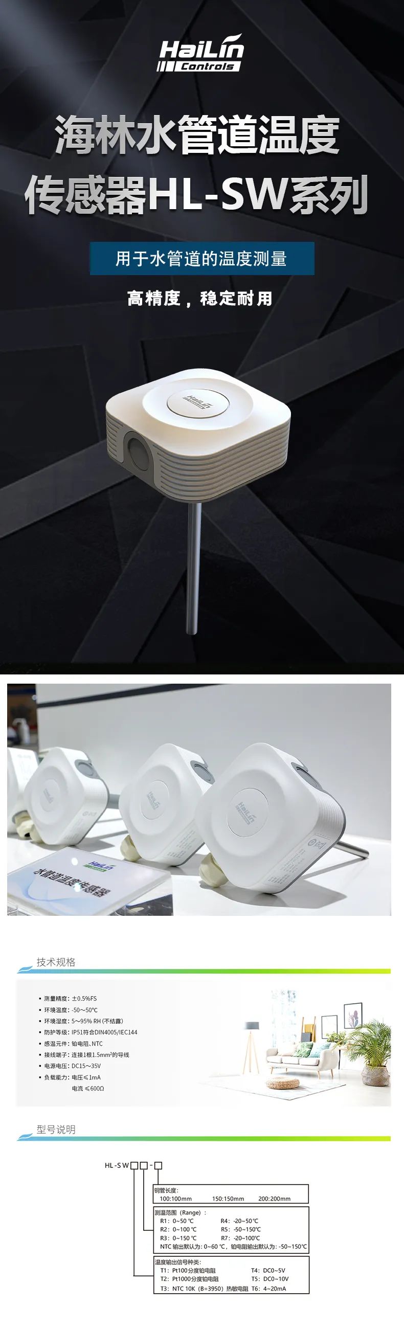 廣泛應用于商業建筑、實驗室、工廠以及國家體育館、國家速滑館、“三場一村”冬奧會項目等大型場館中,主要用于水管道的溫度測量,可提供多種溫度測量范圍,以適應管道流體介質的不同;可提供NTC、鉑電阻、電壓、電流信號輸出,適應各種控制系統的不同要求。當用于水管道測量時,應配套水溫套管使用。